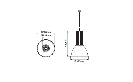Steel suspension cord integrated with up to 5.00mt lenght option.