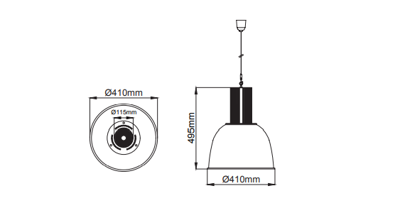 Steel suspension cord integrated with up to 5.00mt lenght option.